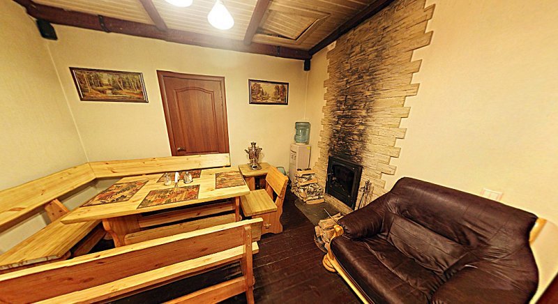 Не хочется в купель? Не проблема! Вместо этого можно посидеть в нашей комнате отдыха. Мы постарались создать здесь комфортный, стильный интерьер из максимально натуральных, экологичных материалов, выбрать мебель, которая будет одновременно удобной и красивой. Надеемся, что он придется вам по душе! Для создания настроения у нас есть камин и караоке. Также у нас работает бар.